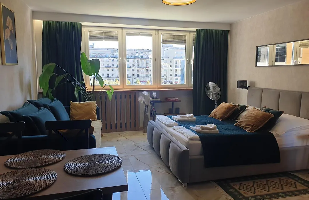 Das 1-Zimmer-Green Apartament W Centrum Warschau liegt im Zentrum von Warschau und ist rund 5 Minuten zu Fuß vom Grab des Unbekannten Soldaten entfernt. Das 30 m² große Apartment bietet Ausblicke auf den Garten.